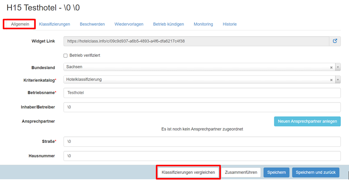 Wenn Sie in eine Detailansicht eines Betriebes klicken, finden Sie unter dem Reiter Allgemein unten den Button Klassifizierung vergleichen.
