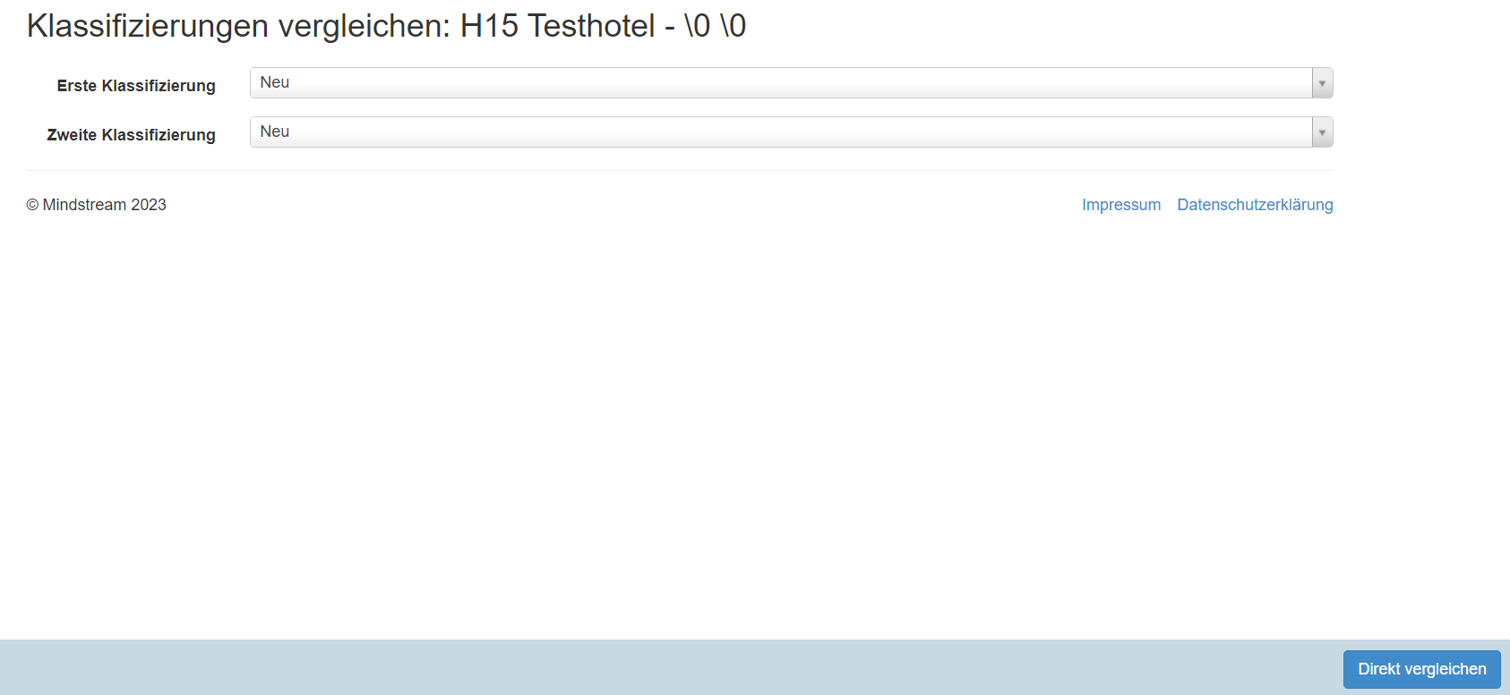 Wenn Sie diesen Button angeklickt haben können Sie nun, falls vorhanden, bestehende Klassifizierungen miteinander vergleichen. Der Button "Direkt vergleichen" unten auf der Seite zeigt Ihnen dann eine Gegenüberstellung der ausgewählten Klassifizierungen mit den entsprechenden Merkmalen. Diesen Vergleich können Sie sich dann auch als PDF ausdrucken, was wieder als ein Button unten auf der Seite angezeigt wird.