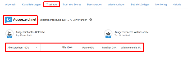 Für jeden Betrieb, bei dem eine Trust You ID hinterlegt ist, erscheint ein entsprechendes Feld (siehe Bild).